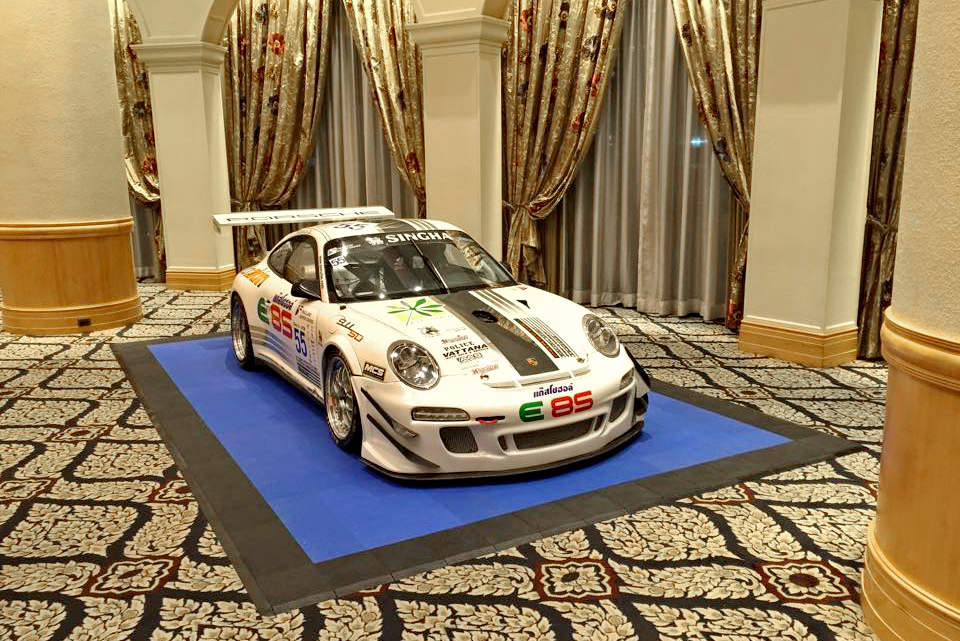 Finally, Super Car continues to prove to be a robust and highly effective marketing platform. Action, excitement, glamour, technology, speed, endurance and lots of media coverage mean it offers certain ROI. One of our newest drivers, Khun Sarun Sereethoranakul, has used his Super Car Class 2-GTM Porsche 997 GT3 Cup to promote ‘ethanol’ fuel and the dazzling white racecar with its ‘E85’ decals has just made an eye-catching appearance well away from its usual racetrack haunt – as a centerpiece exhibit of an important ethanol conference that’s just taken place in the heart of Bangkok.