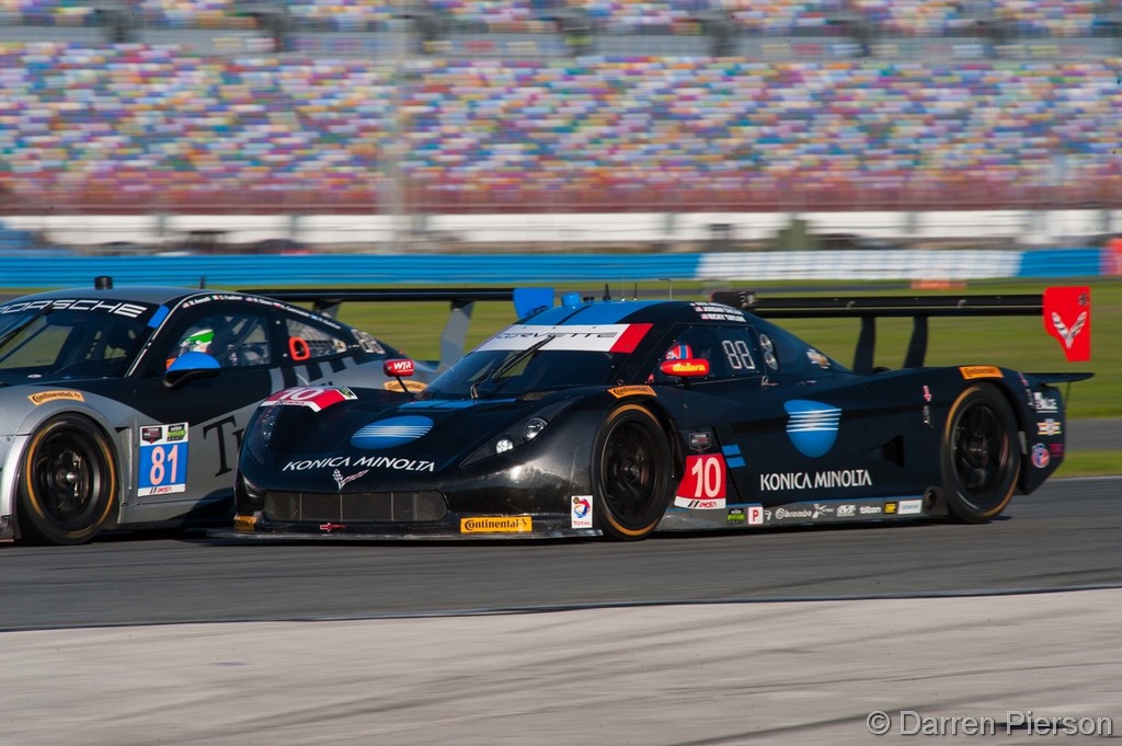 Angelelli and Jordan Taylor and the No. 10 Konica Minolta Corvette DP had a firm grasp on the lead as the closing hours ticked away and gave it up only temporarily during pit stops. But Dixon and his No. 02 team used fuel strategy to sneak into the lead on their final full fuel-and-tire stop with one hour remaining. For the first time since the earlier stages of the race, Dixon was able to open up a comfortable gap on Taylor during the final hour, and he was able to stay ahead of Taylor after both made stops for a final splash of fuel with some 40 minutes left to go. The No. 10 team was all but resigned to accepting its third consecutive runner-up finish at the Rolex 24.
