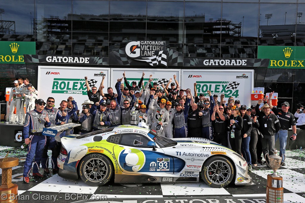 In the January 24 – 25 Rolex 24, team drivers Ben Keating, Al Carter, Cameron Lawrence, Kuno Wittmer and Dominik Farnbacher raced from last on the starting grid to the GT Daytona (GTD) class victory in the No. 93 TI Automotive/ViperExchange.com Dodge Viper GT3-R.