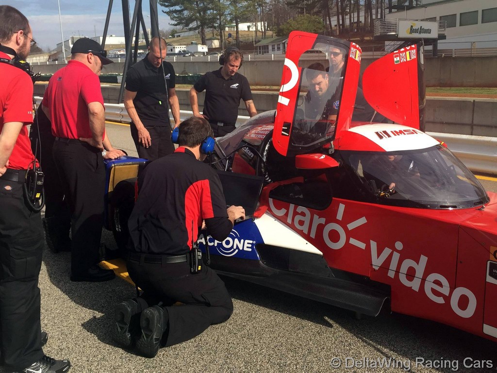 Memo Rojas : « Une des grandes priorités après Daytona a été de s’assurer que nous avions réglé les problèmes de boîte de vitesses. Le team, de concert avec EMCO, a fait un travail fantastique pour que tout soit en ordre. Les essais de Road Atlanta se sont passés sans aucun problème, la boîte de vitesses était bien. Nous n’avons vraiment aucun souci. Avant ces essais, je n’avais fait qu’une dizaine de tours dans la DeltaWing, donc c’était pour moi une superbe occasion de faire davantage connaissance avec la voiture. J’ai été surpris des belles performances de la voiture –la technologie est vraiment éprouvée, nous avons juste à travailler dur pour le démontrer sur la piste. Nous avons roulé sur le mouillé et sur le sec, et nous avons pu faire quelques réglages qui m’ont aidé à tirer plus de la voiture. Comme la voiture est très légère, elle ne perd pas d’adhérence lors d’un freinage appuyé comme quelques-uns des autres prototypes, aussi j’espère que nous pourrons courir un peu sous la pluie cette année.»