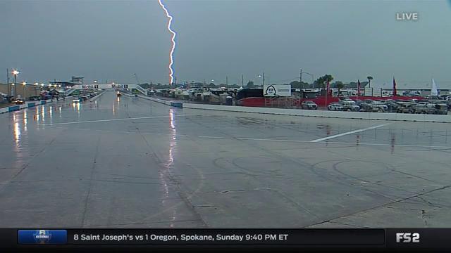 Les officiels viennent de brandir le drapeau rouge à Sebring après moins de trois heures de course. La pluie est toujours présente sur le tracé floridien mais ce sont les éclairs qui ont mis temporairement un terme à la course. L’horloge continue de tourner mais les concurrents ont placé leurs montures en parc fermé. Précisons que la pluie est présente pour la première fois aux 12 Heures de Sebring depuis 2007.