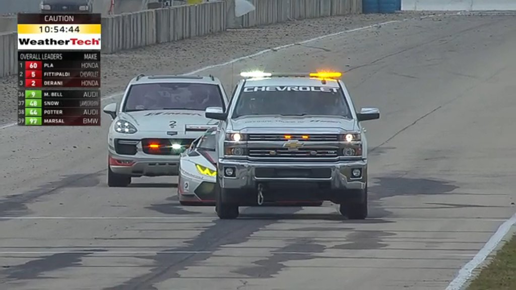 Après une heure de course sage à Sebring, Olivier Pla ne connaît pas la moindre contestation avec le leadership pour la Ligier JS P2 du Michael Shank Racing. La course est neutralisée suite à l’arrêt sur la piste de la Lamborghini Huracan GT3/Change Racing de Bill Sweedler.