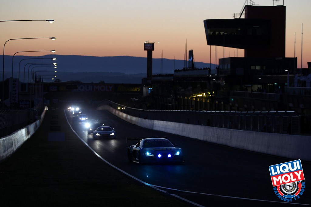 Deux autres voitures étaient dans le même tour que les leaders, la Ferrari 458 AF Corse n°77, cinquième, et la Bentley Continental GT3 n°10, sixième. L’Aston Martin Vantage n°97 du Craft Bamboo Racing était elle aussi au contact avec le groupe de tête et, au gré des ravitaillements, elle pointait même parfois dans le Top 5 alors que le meilleur tour en course restait encore la propriété de Winkelhock au tiers de l’épreuve.