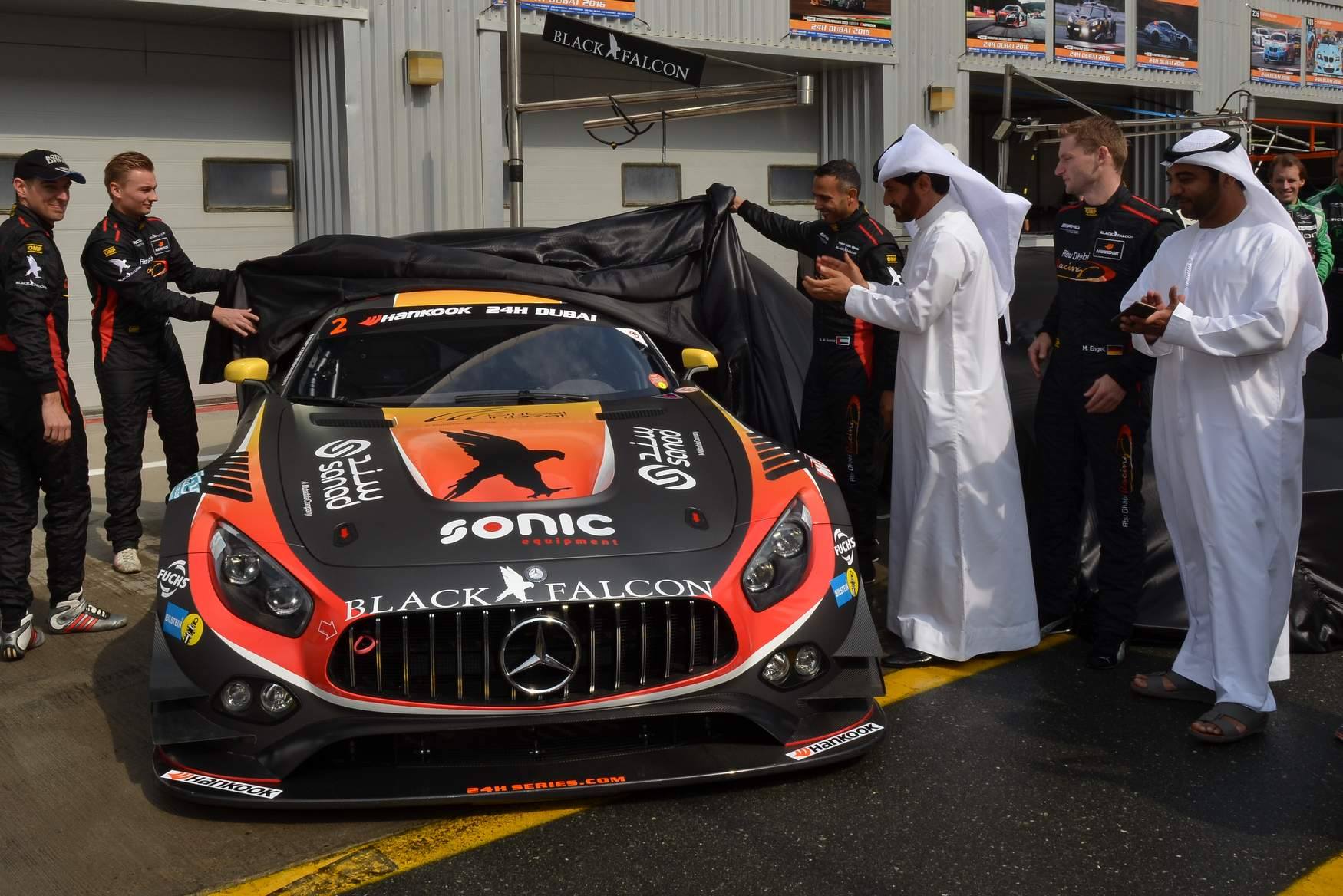- Mohammed Ben Sulayem, vice-président de la FIA, a visité le paddock des 24 Heures de Dubai aujourd’hui. L’occasion pour lui d’assister à la présentation des deux Mercedes-AMG GT3 du team Black Falcon.