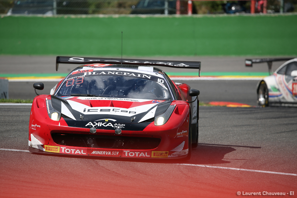 Le Team AKKA-ASP a rejoint les Ardennes belges pour prendre part au désormais traditionnel rendez-vous des 24 Heures de Spa, une épreuve où l’équipe de Jérôme Policand s’est illustrée à de nombreuses reprises. Cette année, le clan AKKA-ASP n’engage qu’une seule voiture en catégorie AM Cup, la Ferrari 458 Italia #10, confiée à l’équipage composé de l’habituel trio Christophe Bourret, Pascal Gibon et Jean-Philippe Belloc, rejoints pour l’occasion par Philippe Polette. Après avoir signé la pole (retirée plus tard sur tapis vert) et mené sa course sur un train d’enfer, le quatuor échoue au pied du podium à 30 minutes du damier… Le suspense est resté entier jusqu’au bout. Mais la grande satisfaction de l’équipe demeure son niveau de performance face à de solides adversaires. Une équipe, une voiture, quatre pilotes et comme toujours un indéfectible esprit combatif.