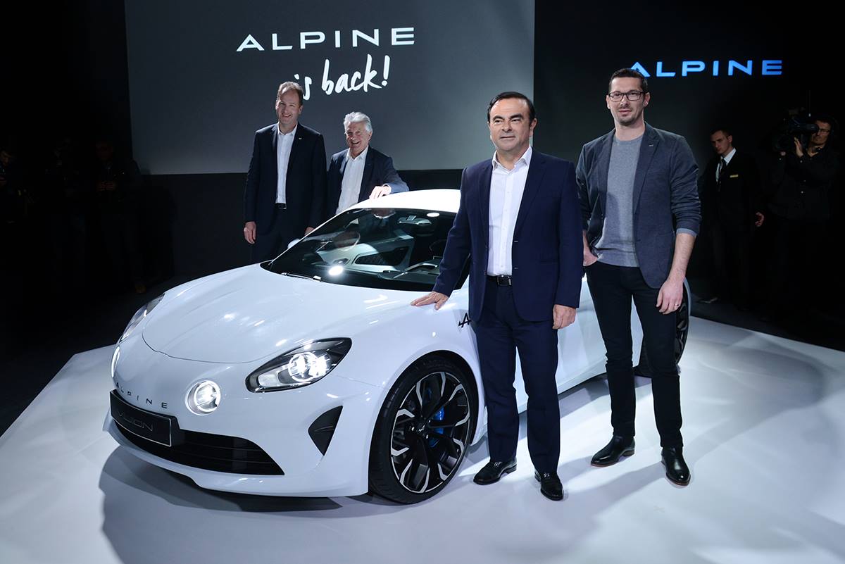 Certains l’aiment déjà, d’autres trouvent qu’elle manque de charisme. Les goûts et les couleurs… Oui la face avant fait penser à la Berlinette, oui l’arrière a un air d’Audi A7. Ce qui est sûr, c’est que l’on devrait se féliciter du retour d’Alpine. Dévoilée en grandes pompes à Monaco par Carlos Ghosn, l’Alpine Vision fait un clin d’œil au passé. « Le Motorsport et les voitures de sports sont profondément ancrées dans l’ADN du Groupe Renault » a indiqué Carlos Ghosn , CEO du Groupe Renault. « Nous avons annoncé ce mois-ci notre retour en Formule 1 avec une équipe Renault, et aujourd’hui nous annonçons Alpine. C’est l’étape suivante de notre stratégie visant à tirer parti des talents de la technologie entre la route et la piste. Nous avons hâte d’atteindre de nouveaux clients dans le segment des voitures de sport premium. » Michael van der Sande vient de rejoindre la marque dirigée par Bernard Ollivier au poste de directeur général. Le design est sous la coupe d’Antony Villain.