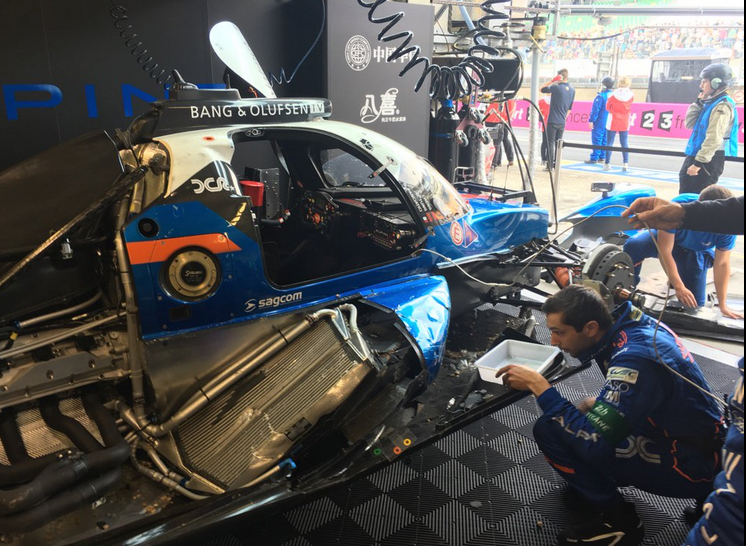 Le châssis de l’Alpine A460 n’a pas été touché mais de nombreuses pièces sont à changer. Nelson Panciatici avait qualifié l’auto à la 2ème place de la catégorie LM P2.