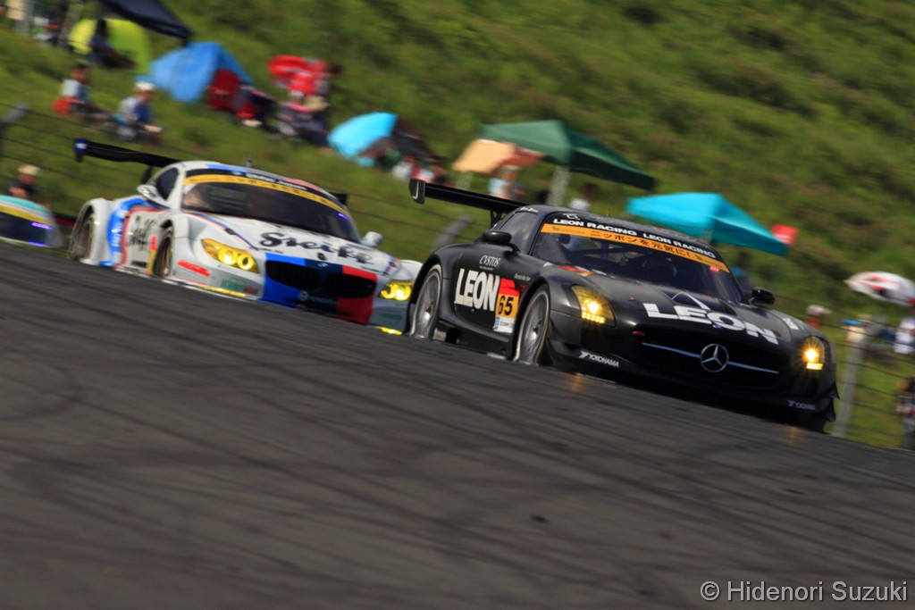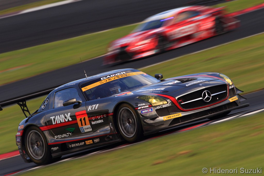 Celui-ci se battait pour cette deuxième place avec Seiji Ara (BMW Z4 Sports Trophy Team Studie n°7), Bjorn Wirdheim (Mercedes SLS GAINER TANAX n°11) et André Couto (Nissan GT-R GT3 GAINER TANAX n°10). Les positions changeaient entre ces quatre pilotes au fil des tours.