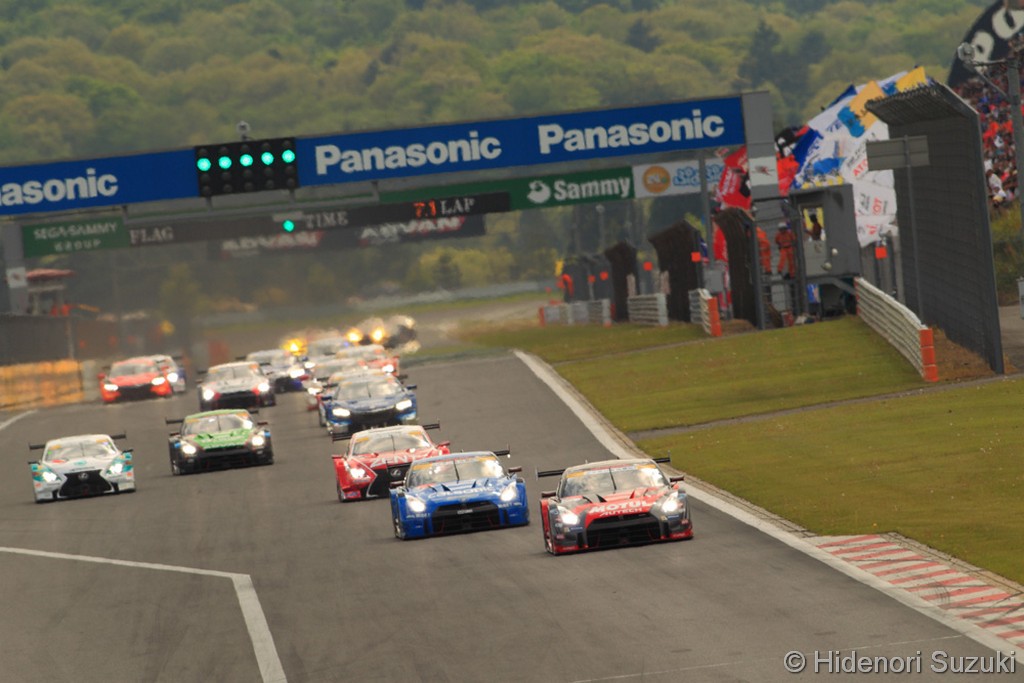 Alors  que les deux Nissan avaient un peu de champ libre, la lutte était sévère derrière. Kohei Hirate (Lexus SARD n°39) prenait le meilleur sur Takuya Izawa (Nissan Kondo Racing n°24). Yuji Tachikawa entrait en contact avec une GT300 retardataire, la Lexus n°°38 était endommagée et rentrait au stand où elle allait rester pendant près de deux heures…