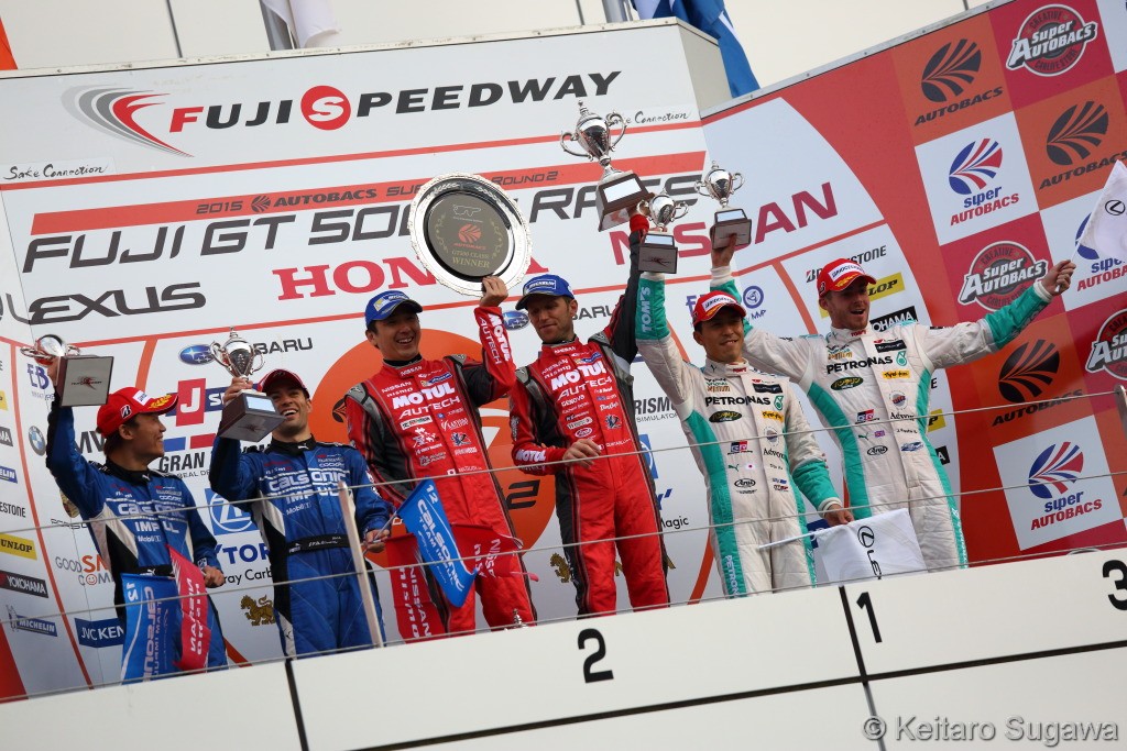 Après avoir fait samedi la pole position lors des qualifications de la deuxième manche 2015 du SUPER GT, la Nissan GT-R NISMO n°1 de Ronnie Quintarelli et Tsugio  Matsuda –les champions GT500 2014- se sont imposés en course.