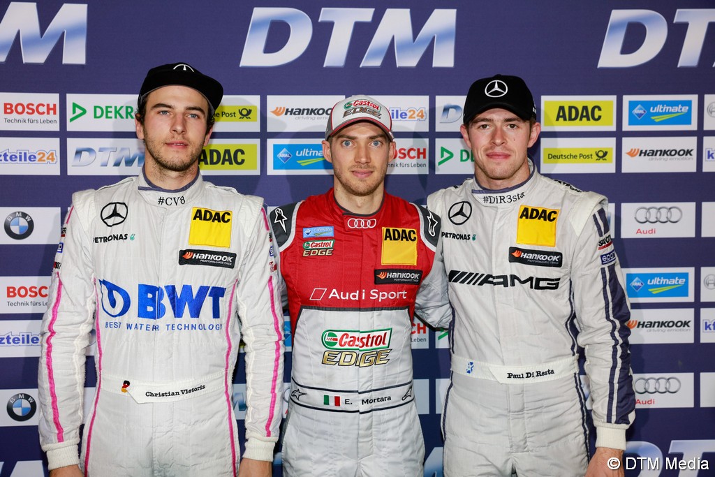Poleman, Félix da Costa (BMW Schnitzer n°13) conserve la première place, devant Gary Paffett (Mercedes-AMG ART GP n°2) et Tom Blomqvist (BMW RBM n°31), alors que Mortara a quelque peu manqué son envol mais se reprend très vite. Par contre Wittman n’a pas raté son départ et passe dès le premier tour la BMW RBM de Blomqvist. Mortara réagit et passe en cinquième position aux dépens de Maxime Martin (BMW RBM n°36) et se rapproche de Blomqvist.