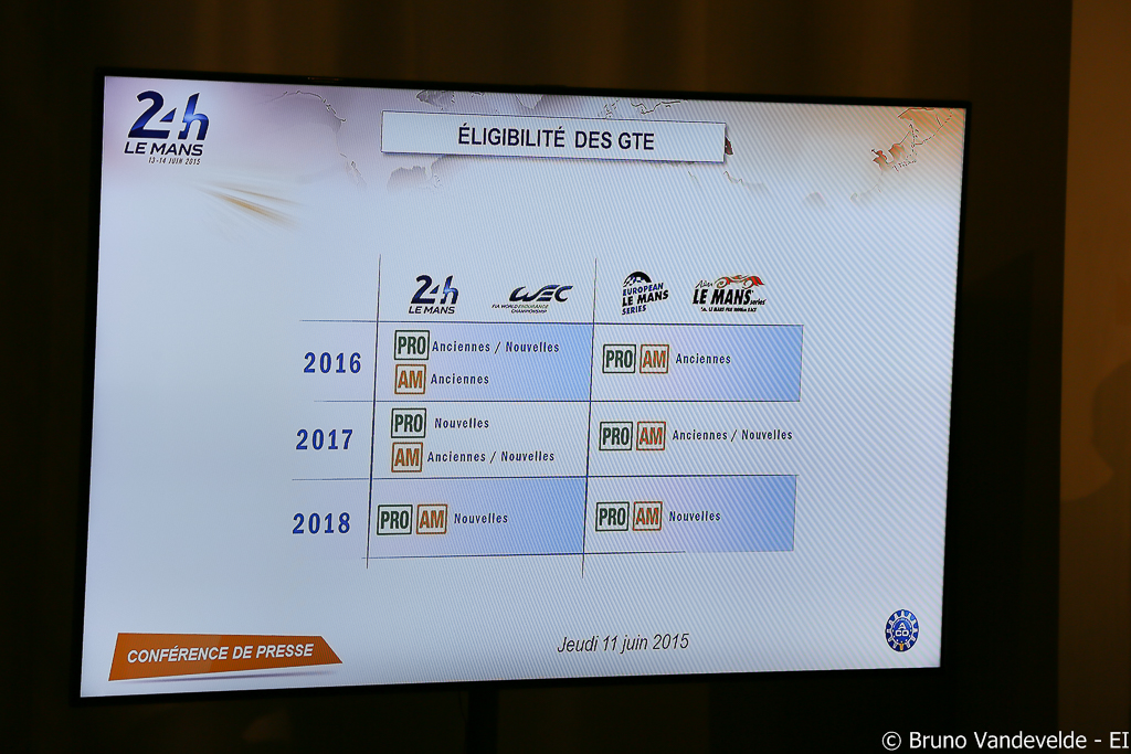 D’autres marques pensent à venir en GTE du fait de la nouvelle réglementation en dépit de l’échec de la convergence GTE/GT3. L’idée est bien de faire du GTE la catégorie GT Premium avec les voitures “top niveau du GT mondial.” Les performances des autos seront revues à la hausse avec une réduction drastique des dérogations lors des procédures d’homologation (règlement moins contraignant mais appliqué à la lettre). La durée d’homologation passe à trois ans avec l’instauration d’une fenêtre de performance la plus étroite possible pour améliorer la BOP. La sécurité a aussi été repensée avec une trappe d’accès au pilote par le toit.