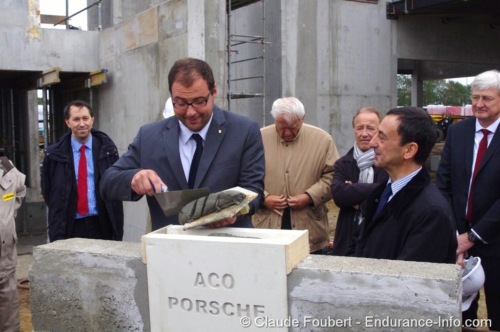 Pierre Fillon, Président de l’ACO, et Marc Ouayoun, Directeur Général de Porsche France, ont posé cette première pierre. Les représentants des collectivités régionales et départementales ainsi que de la Préfecture étaient également présents lors ce cette cérémonie, tout comme ceux de la trentaine d’entreprises participant à la construction du Porsche Experience Center.