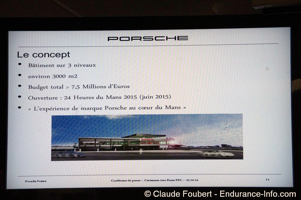 Le bâtiment est sur le site de Maison Blanche. Il accueillera également la Porsche Sport Driving School, qui est basée au Mans depuis 2011. Le Porsche Experience Center comprend un showroom, des salles de formation, des salles de réception, un restaurant, un atelier technique. Il pourra également servir de cadre à des évènementiels et sa terrasse sera munie de gradins qui offriront une vie privilégiée sur le circuit lors des 24 Heures.