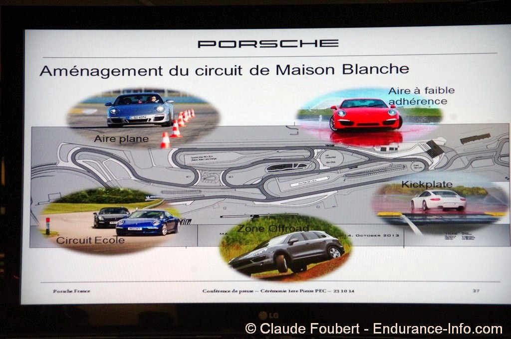 Le Porsche Experience Center a un accès direct sur le circuit Bugatti et le circuit de Maison-Blanche, celui-ci allant également subir des aménagements afin de faciliter l’apprentissage de la conduite sportive dans des conditions normales ou particulières, avec des zones à faible adhérence, des kickplates –simulateurs hydrauliques de dérapage et d’obstacles-, des zones tout-terrain –pour les possesseurs de Panamera et de Cayenne notamment.