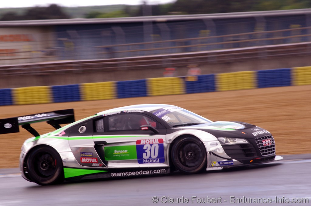 A l’avant Ayari continue à enfoncer le clou et possède une trentaine de secondes d’avance avant de passer le relais à Jean-Claude Police. Un autre pilote a fait un premier relais superbe : Rémy Deguffroy, parti en dernière ligne avec l’Audi Speed Car n°30, cède le volant à Pascal Destembert en cinquième position après être venu à bout de pilotes plus huppés.