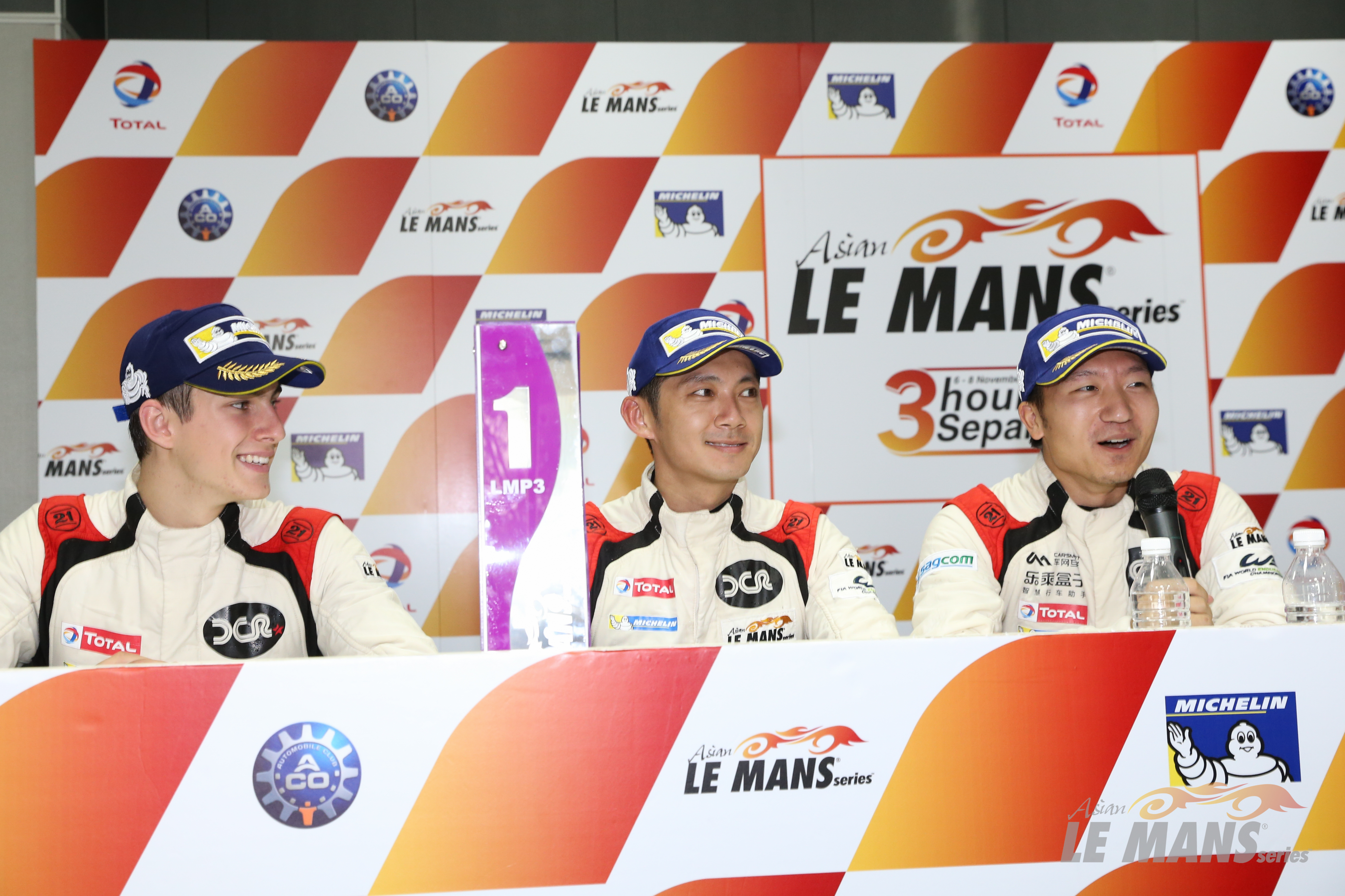 Le David Cheng Racing n’aura pas attendu longtemps avant de décrocher son premier titre. Lancée l’année passée, l’écurie chinoise a donné à la Ligier JS P3 sa première couronne en Asian Le Mans Series avec jusqu’à présent trois succès en autant de courses. Le titre 2015/2016 permet à David Cheng de s’offrir un troisième sacre Asian Le Mans Series en trois ans et Ho-Pin Tung un deuxième de rang. Absent à Fuji, Thomas Laurent n’est pas titré mais le Vendéen a fortement contribué au succès de l’équipe puisque pour ses débuts dans une voiture fermée, le jeune pilote n’a pas commis la moindre faute. Le David Cheng Racing est maintenant en route vers les 24 Heures du Mans dans la catégorie LM P2. Malgré ce troisième succès, le trio n’a pas connu une course tranquille.