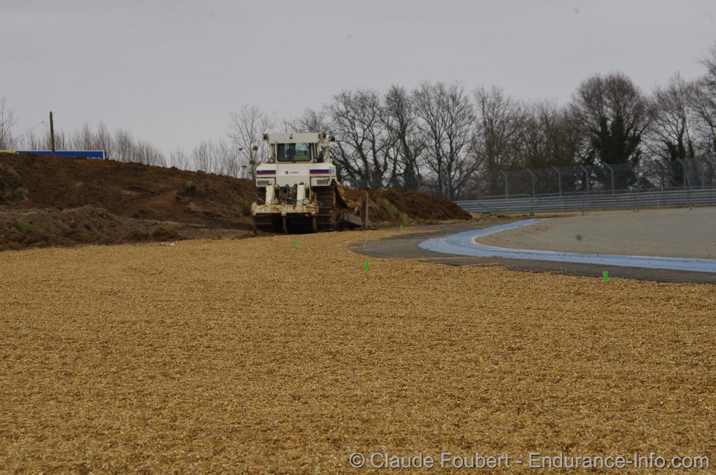 Les travaux se poursuivent sur le circuit des 24 heures en vue de l’édition 2015. Après que les bas-côtés de la piste aient été revêtus d’une large  bande d’asphalte entre le virage de Mulsanne et le virage Porsche,  c’est ce dernier virage qui est actuellement en chantier.