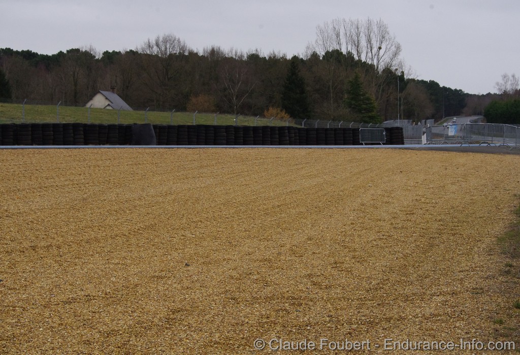 Le premier virage Porsche, le gauche du raccordement de la D139 et du grand circuit est désormais doté d’un vaste bac à gravier. Le dégagement précédent,  a été élargi de 30 mètres. Ce n‘est pas tout à fait Circuit-plage, mais un pilote en quête d’une petite halte sous le soleil manceau du mois de juin pourrait y trouver son bonheur…En cette période d’examens, il sera fortement recommandé de passer le bac, et de ne pas s’y échouer !
