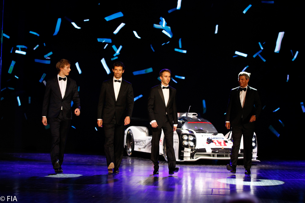 Le Gala FIA qui s’est tenu vendredi au Lido à Paris a permis de récompenser les champions 2015, à savoir Timo Bernhard, Brendon Hartley et Mark Webber. Marcel Fässler, André Lotterer et Benoît Tréluyer, solides adversaires au trio de la Porsche 919 Hybrid #17, ont eux aussi été récompensés, au même titre que Romain Dumas, Neel Jani et Marc Lieb. Fritz Enzinger a ramené le trophée pour le compte de Porsche, avec à ses côtés Alex Hitzinger et Andreas Seidl.