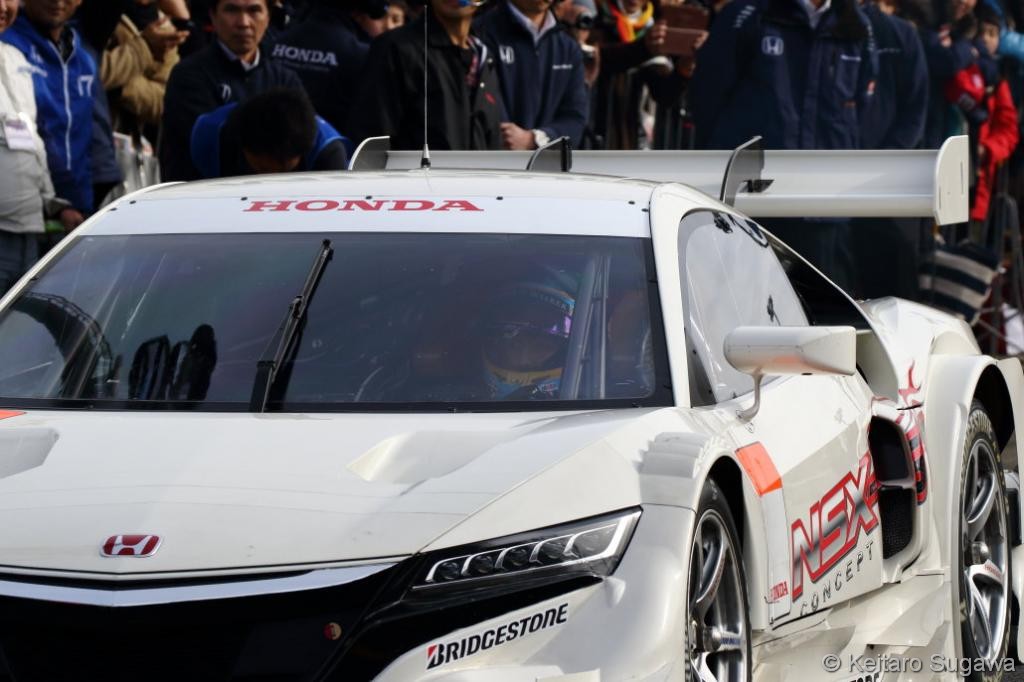 - Pilote McLaren Honda en Formule 1, Fernando Alonso était logiquement invité dimanche dernier au Japon pour le traditionnel Honda Racing Thanks Day réunissant les pilotes de la marque japonaise, tant sur quatre roues que sur deux. Le pilote espagnol a eu l’occasion de prendre le volant sur le circuit de Motegi de différentes Honda, dont une NSX Concept-GT du SUPER GT, ainsi également qu’une Honda RC213V, la moto de MotoGP alors que son compatriote, le quadruple champion de MotoGP, Marc Marquez prenait en mains la Honda NSX Concept-GT ici