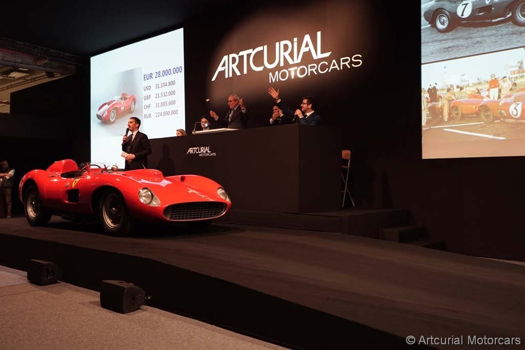 - Artcurial Motorcars : la célèbre Maison de vente aux enchères, spécialisée dans l’automobile, a créé la sensation lors du salon Rétromobile. Un nouveau record a été établi par une Ferrari 335S Scaglietti (châssis 0674) de 1957 qui a été adjugée pour la somme de 32 075 200 €, frais inclus! Elle faisait partie de la collection de Pierre Bardinon, fondateur du Circuit (et du Musée) du Mas du Clos, décédé en 2012. Cette vente s’est déroulée sous le marteau de Maître Hervé Poulain, Président d’Honneur de Artcurial et lui-même ancien pilote des 24 Heures du Mans –il a introduit les Art Cars-, de Mathieu Lamoure, Directeur Général, et de Pierre Novikoff, Directeur Adjoint de Artcurial Motorcars. La prochaine vente aux enchères de Artcurial Motorcars aura lieu dans le cadre de Le Mans Classic le 9 juillet prochain.