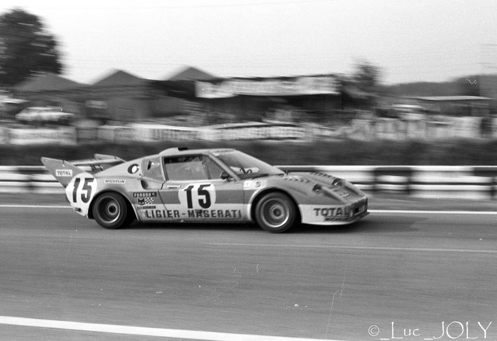 LM_74_542_wRetour derrière le déclencheur en 1974 même si Luc assure en course, le panneautage à Mulsanne. Guy aligne une JS2, de plus en plus body buildée, aux essais d’Avril et deux lors de la course. Si la n°14 ne voit pas l’arrivée à cause d’une salade de soupapes, la n°15 reçoit l’hommage des damiers à la 8ème place…