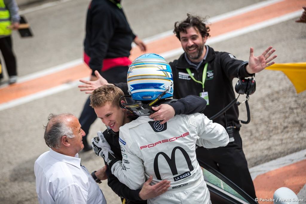 « Depuis les premiers essais réalisés durant l’hiver, je me sens bien avec l’équipe Martinet by Alméras et j’étais assez confiant car la voiture marchait déjà très bien. J’ai néanmoins tendance à rester en permanence sur la réserve, et même si je savais que nous serions dans le coup, jamais je ne me suis dit : « tu vas gagner la première ! ». Il fallait pour cela que tout soit réuni et que la réussite soit au rendez-vous car le niveau ne cesse d’augmenter. Je suis donc pleinement satisfait de l’issue de la première course, que je peux résumer en trois temps. Un excellent départ m’a d’abord permis de prendre la roue du leader. Et comme le leitmotiv dans ce championnat est de marquer des points, j’ai ensuite privilégié l’attente et l’observation. Je suis finalement passé à l’offensive dans le 5e tour et j’ai dû composer avec du sous-virage en fin de parcours à cause d’un freinage optimiste qui provoqua un plat sur un pneu. J’ai néanmoins réussi à conserver un bon rythme pour gérer mon avance. Mon expérience des coupes mono-marques me fut bien utile sur ce coup ! Cela fait un an que je courais après ce premier succès en Porsche Carrera Cup France. La saison redémarre, j’intègre une nouvelle équipe… c’est un gros soulagement. J’apprécie de bénéficier d’une telle stabilité technique autour de moi. Le team est très professionnel, a une parfaite connaissance de la Porsche, et quand on veut apporter une modification, on le fait sans se poser de question. La preuve, on réalise un 4e chrono en première qualification avec une balance dont nous ne sommes pas totalement satisfaits, mais de suite, les ingés apportent le petit truc qui me permet de disputer une grosse course et de prendre la pole le dimanche. Je prends les courses comme elles viennent, sans me mettre de pression, mais j’espère reproduire ces performances dès Le Mans ! »