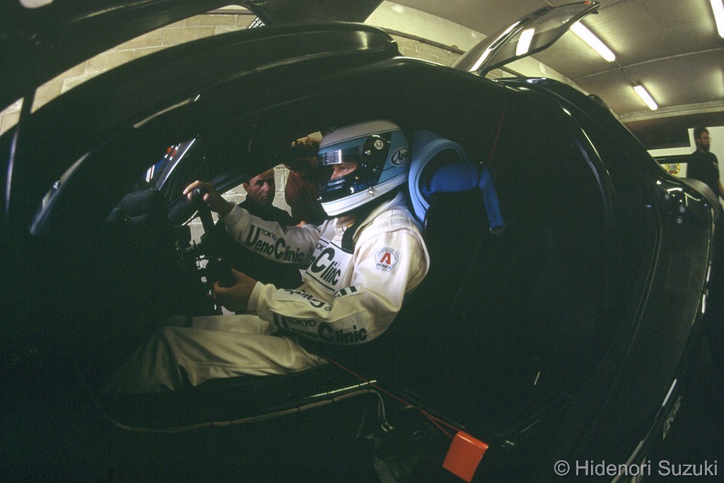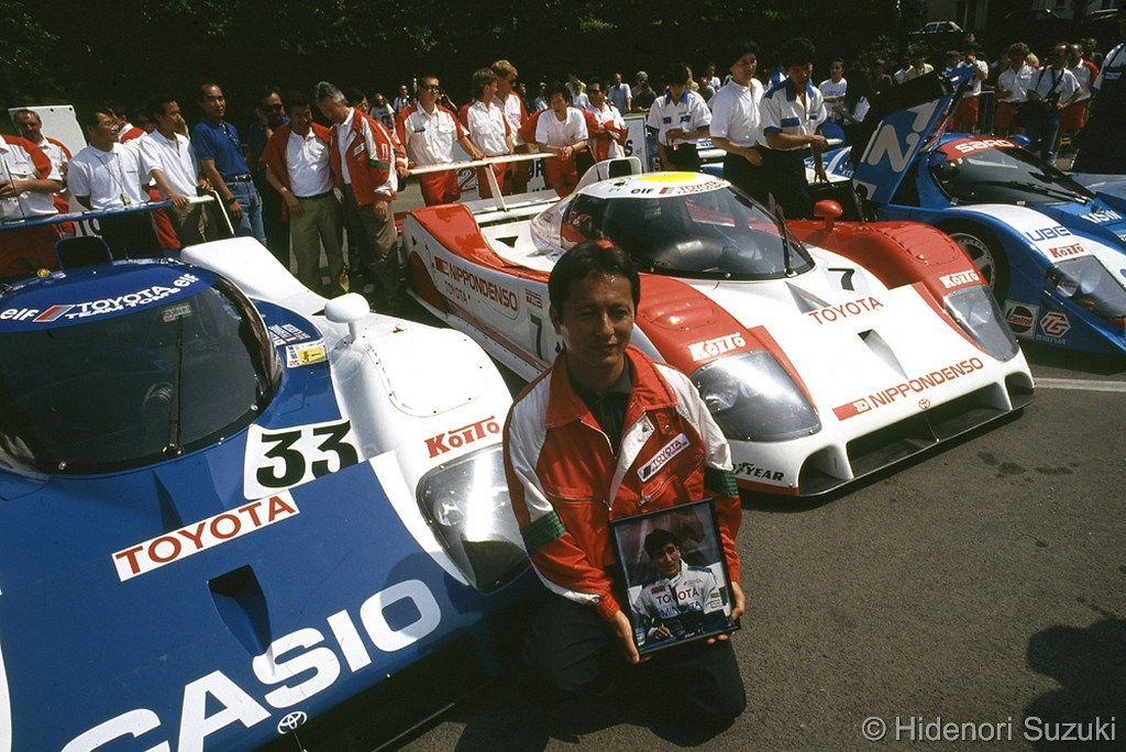 Il avait aussi terminé sixième de l’édition 1990 au Mans, associé à Geoff Lees et Hitoshi Ogawa (ci-dessus) sur une Toyota 90C-V. Hitoshi Ogawa se tua à Suzuka en mai 1992 et Masanori Sekiya lui rendit hommage (ci-dessous) au Pesage avant les 24 Heures du Mans 1992 où il se classa justement deuxième derrière la Peugeot 905 de Derek Warwick/Yannick Dalmas/Mark Blundell.