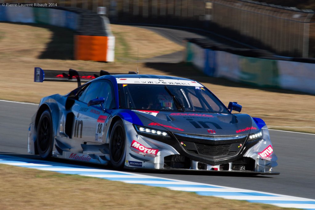 Quintarelli avait déjà fait la pole position hier et c’est lui qui prenait le départ. Il conservait la première place, suivi par la Nissan n°46 du Team Mola pilotée par Masataka Yanagida et par la Honda NSX-Concept Weider Dome Racing de Naoki Yamamoto, qui avait pris un bon départ également. Les trois voitures étaient chaussées en Michelin dont les pneumatiques faisaient merveille sur le circuit de Motegi.