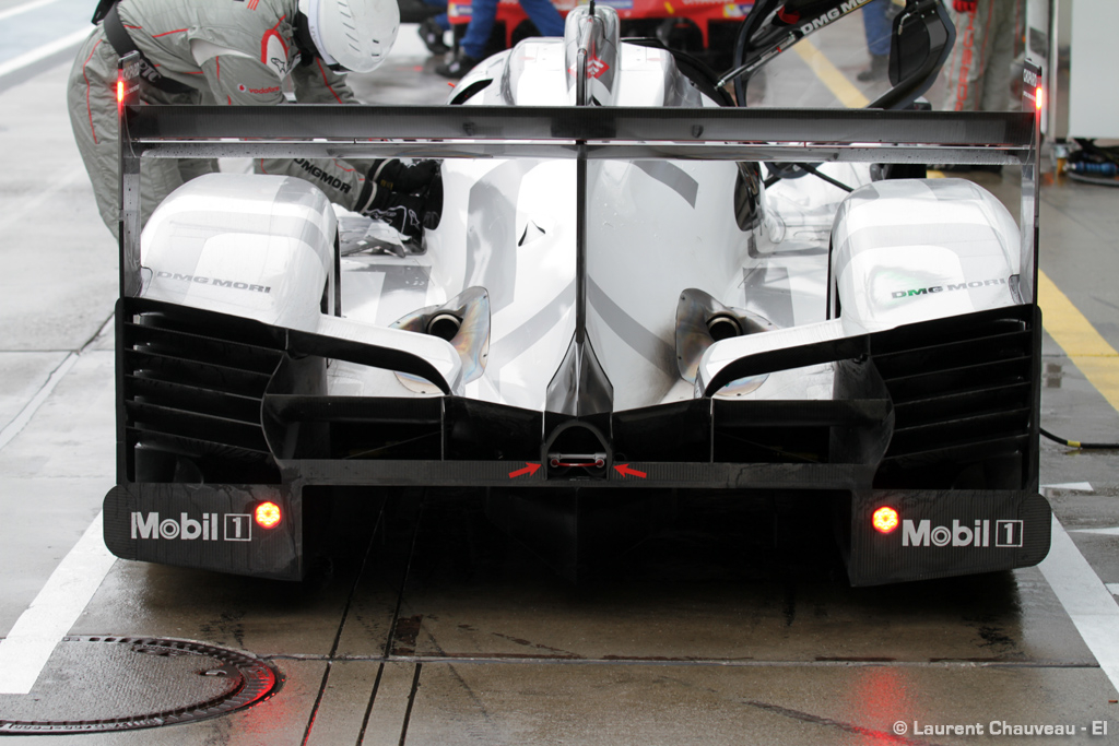 - On a travaillé chez Porsche Team pour concocter un nouveau kit high downforce. Il suffit de regarder de près l’arrière des 919 Hybrid pour s’en convaincre. Chez Porsche Team, on annonce que la carrosserie est nouvelle à 80%.