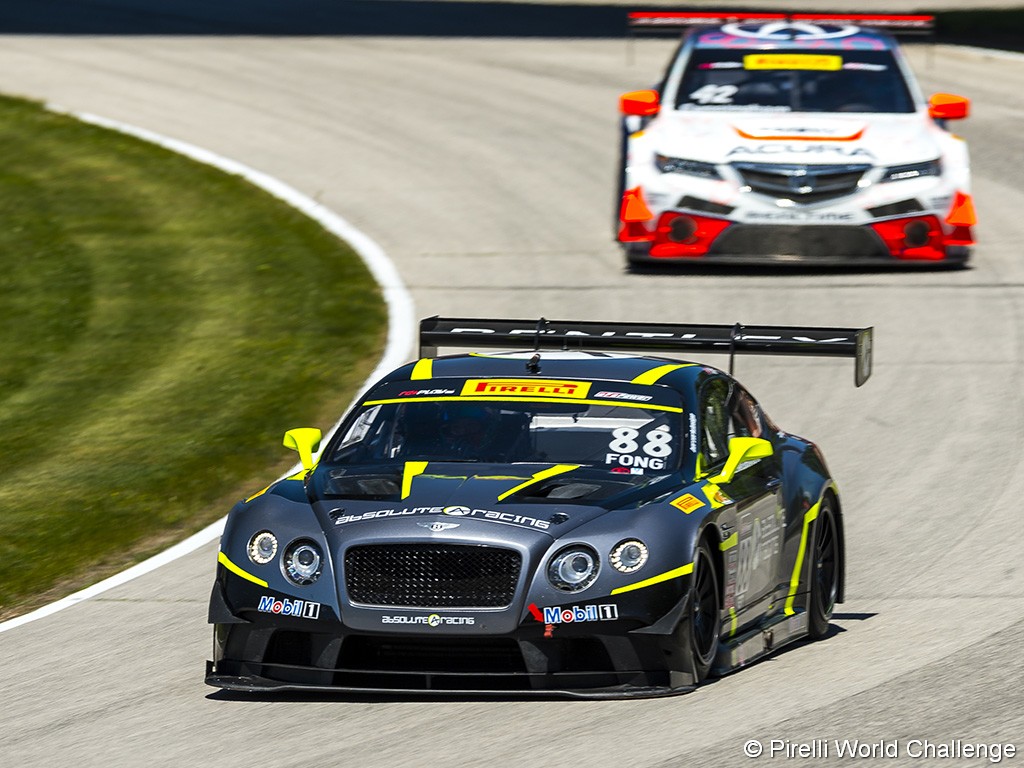 Adderly Fong (Bentley Continental GT3 Team Absolute n°88) avait réalisé la pole position en toute fin de séance, une séance qui avait été très disputée et qui avait vu plusieurs pilotes se succéder en pole provisoire. Peter Cunningham (Acura TLX-GT RealTime Racing n°42) avait dégainé le premier, avant de se faire déloger par Patrick Long (Porsche 911 GT3-R Wright Motorsports n°58). Cunningham reprenait le leadership en 2’05”622, mais à deux minutes du drapeau à damiers, son chrono était amélioré par la deuxième Acura RealTime Racing, la n°43 de Ryan Eversley, mais dans les tout derniers instants de la session, Adderly Fong mettait tout le monde d’accord en 2’05”352 et décrochait sa toute première pole en Pirelli World Challenge. Il précédait les Acura de Eversley et Cunningham, la Porsche de Patrick Long et es Cadillac de Johnny O’Connell et de Michael Cooper.