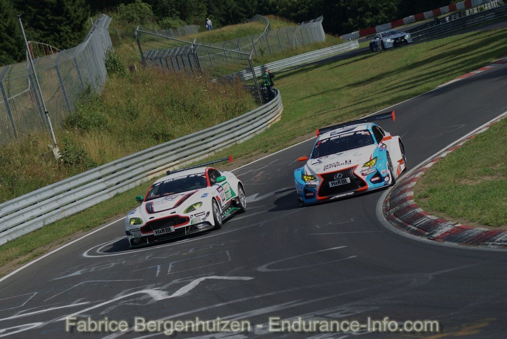 Plutôt convaincantes lors de leur première sortie, les Lexus RC-F GT3 ont confirmé tout le bien que l’on pensait d’elles. Ainsi si l’exemplaire confié au trio Oestreich-Tresson-Frey a du se résoudre au forfait, en revanche la #55, pilotée par les frères Dominik et Mario Farnbacher, a brillé de mille feux, décrochant une superbe 2e place à l’issue d’un duel haletant avec la BMW Z4 GT3/Walkenhorst Motorsport de Michela Cerruti, Felipe Laser et Jesse Krohn, une fois de plus très à son avantage.