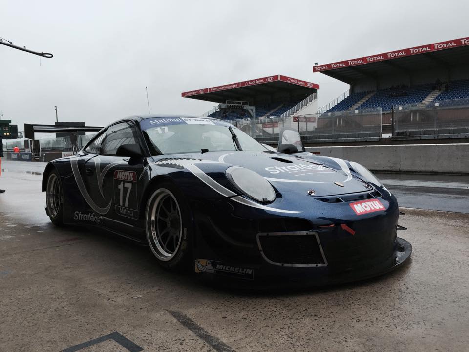 Yves Courage dans le paddock du Mans. L’image était devenue rare. Très rare même, depuis 2007 et le rachat de Courage Compétition. Autant dire que son retour dans la place sarthoise, dans le cadre du GT Tour, constitue un réel événement. D’autant plus que ce week-end marque les vrais débuts de son Team StratégiC (avec un « C » majuscule comme Courage), après avoir dû louer une voiture pour l’étape inaugurale de Lédenon. Cela ne s’était pas très bien passé, d’ailleurs, la Porsche de Nicolas Misslin, Sacha Bottemanne et Benjamin Lariche ayant dû rapidement abandonner après un problème mécanique.