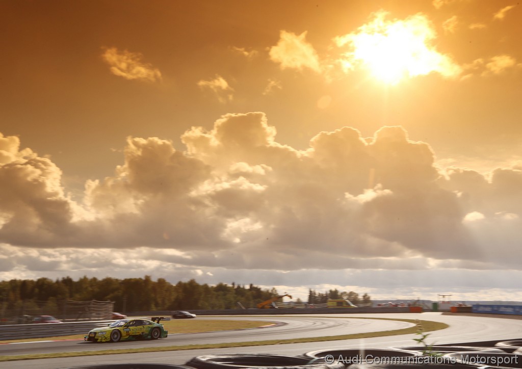 Ekström amorce des simulations d’attaque sur la BMW de Martin. Le suédois est à moins de trois dixièmes de la BMW, à deux dixièmes un tour plus tard et s’empare de la troisième place au trente-quatrième tour au dernier freinage avant la ligne droite, mais il est à près de onze secondes de Rockenfeller et à cinq secondes de la deuxième place de Spengler.