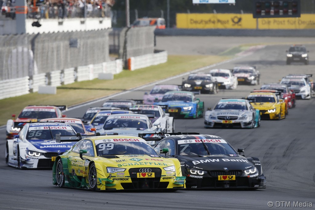Rockenfeller conserve la première place au départ, alors que Ekström est dépassé par les BMW de Spengler et de Martin. Jamie Green passe également le suédois et prend la troisième place à Martin dès le premier tour. La première Mercedes-AMG C63 est celle de Gary Paffett (ART Grand Prix n°2), en septième position, derrière Ekström et Nico Müller.