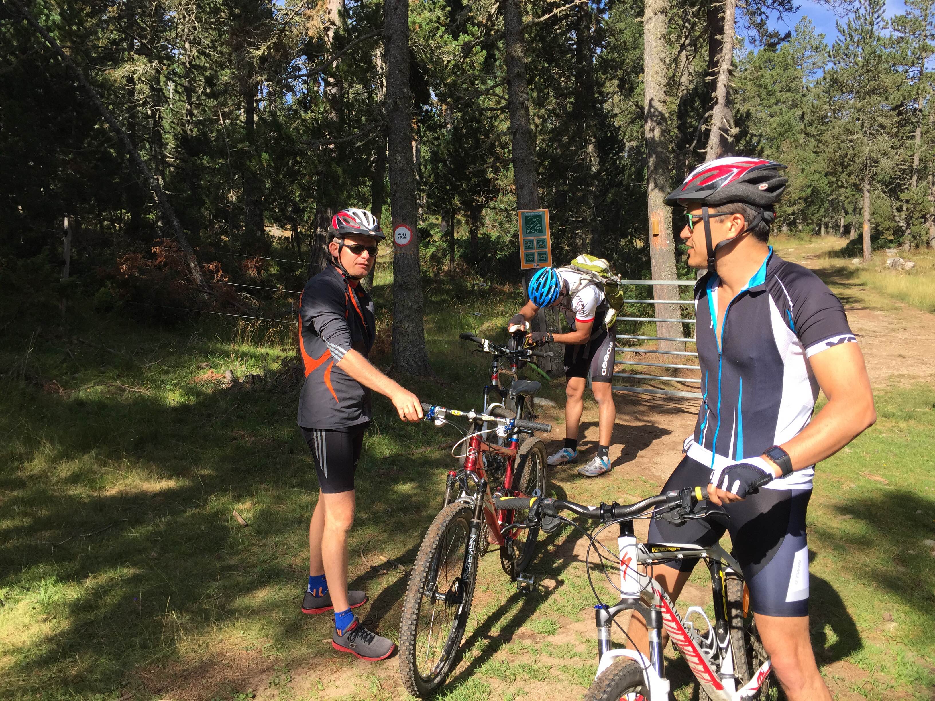 La deuxième journée débute par une sortie en VTT autour de Font Romeu, toujours en compagnie de Jean-Fernand, le tout dans un cadre magnifique bien loin des chemins plats dont j’ai l’habitude. J’ai le droit au vélo habituellement réservé à Seb Ogier, donc un engin qui connaît bien les trajectoires des chemins escarpés. On passera sur le pitstop de Manu le temps de réparer une crevaison. C’est que les pilotes ne sont pas faciles à décrocher en côte. Comme la veille lors de la course à pied, il n’est pas question de se contenter de pédaler. Il faut surveiller son rythme cardiaque en fonction du dénivelé afin de rester dans la bonne fourchette qui pour moi se situe autour de 140. Les kilomètres s’enchaînent un à un tout comme la montée en altitude. On sent bien que l’air se raréfie dans les sous-bois. Après trois bonnes heures passer sur le vélo, il est temps de se restaurer avant de poursuivre les exercices au centre où il est toujours question d’affûter ses réflexes, sa concentration et sa mémoire avant un peu de sophrologie.