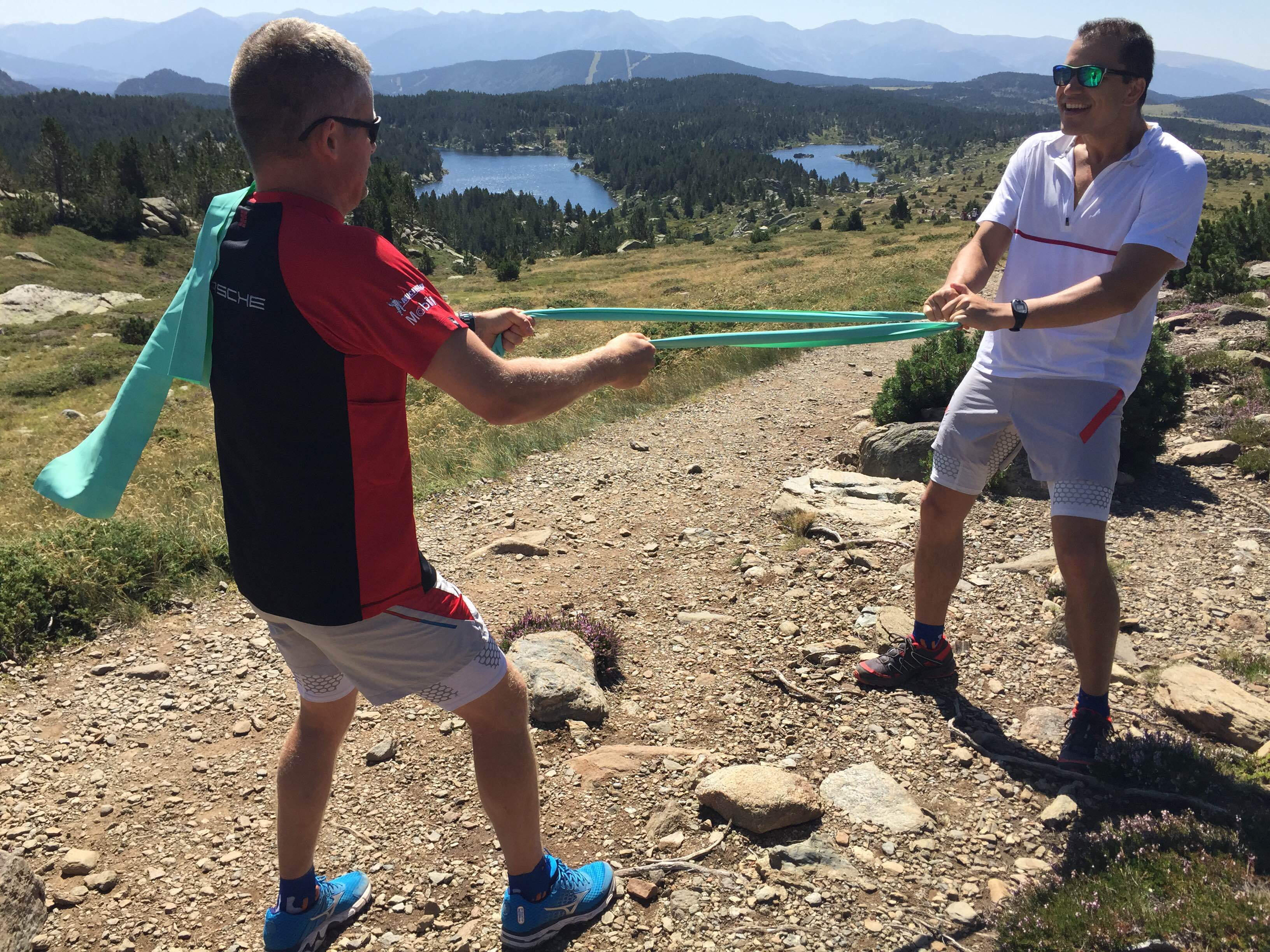 La météo étant clémente, l’après-midi se passe en extérieur avec une bonne heure de canoë avant de mettre de côté la pagaie pour les chaussures de running. C’est là que les choses se gâtent pour moi qui ne suis pas un adepte du footing. Pour ce run en montagne, c’est coach Jean-Fernand qui nous accompagne. On part pour plusieurs minutes avant une petite récupération où on attache des poids aux deux poignets pour lever les bras. En running, le king est bien Manu qui part en solitaire dès les premières minutes. On répète l’exercice à plusieurs reprises tout en contrôlant son rythme cardiaque. Il fait chaud, c’est dur mais l’organisme tient le choc. Pour moi, cette première journée est celle de la victoire pour avoir pris part aux différents exercices et sans être complètement largué.